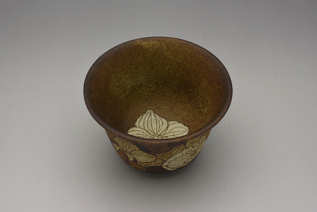 掻落花紋湯呑