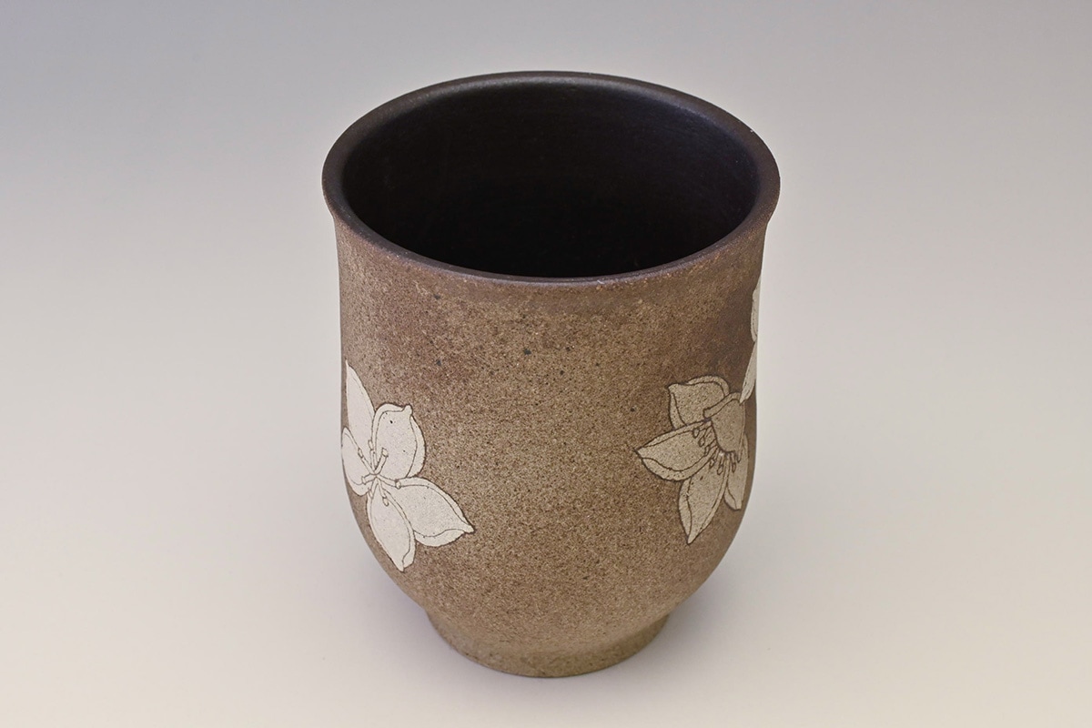 掻落花紋湯呑