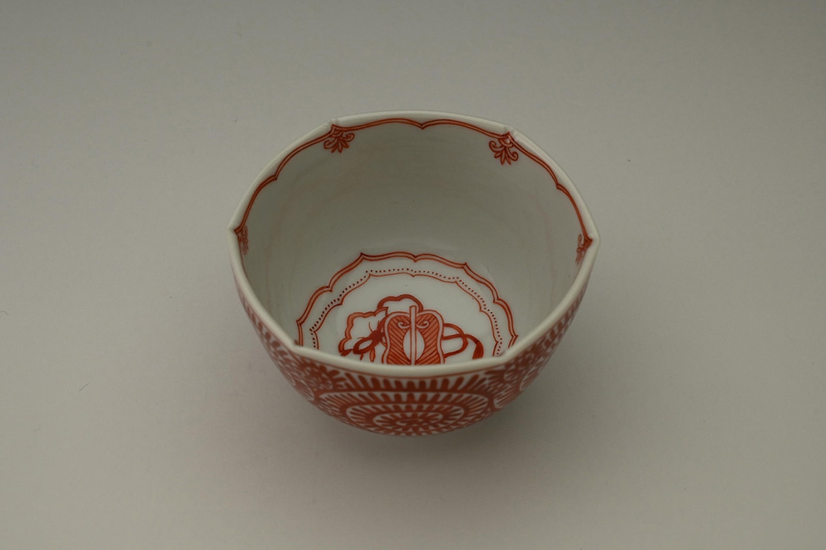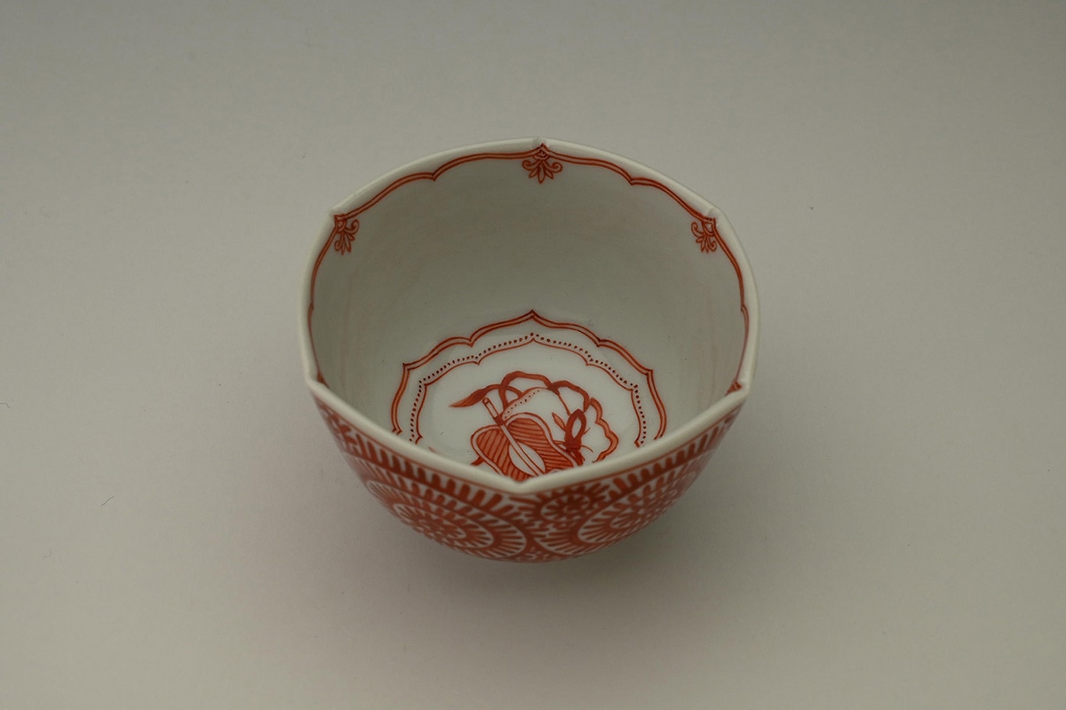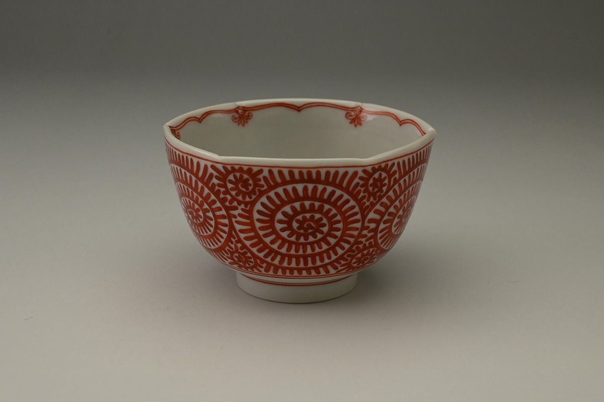 赤絵小紋面取猪口