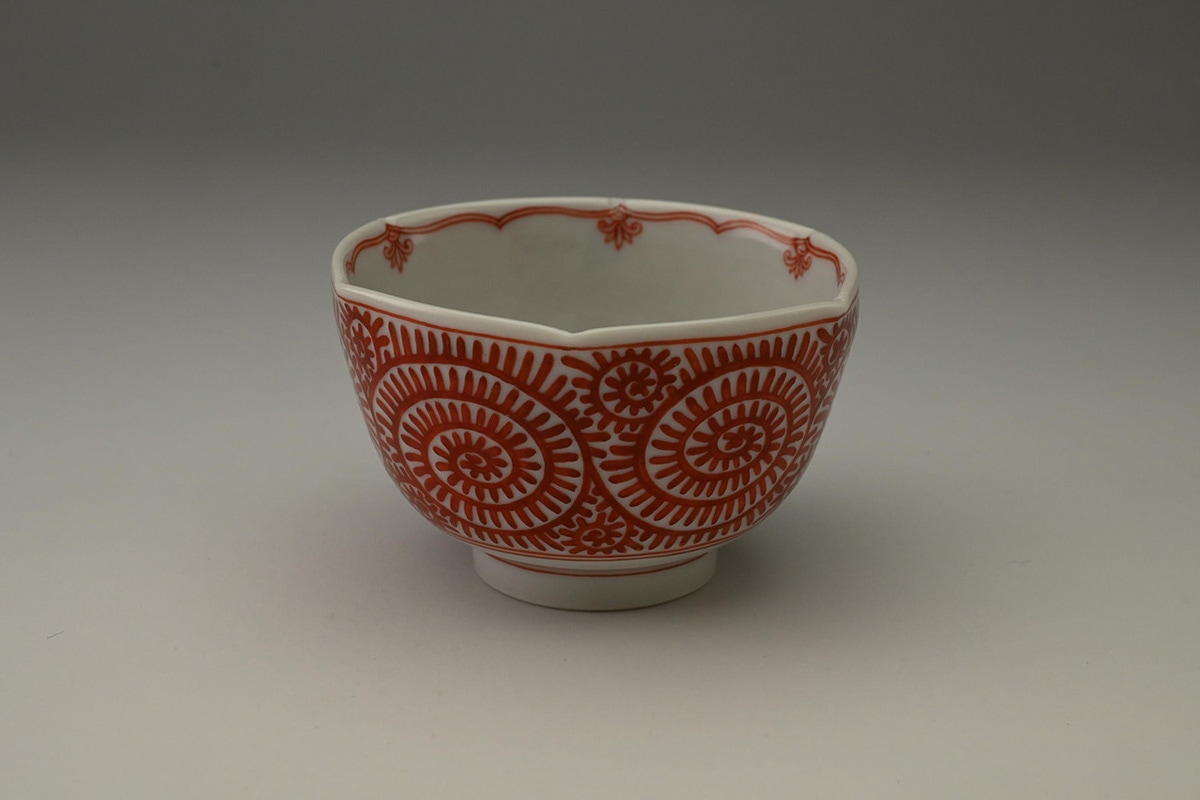 赤絵牡丹唐草六角盃