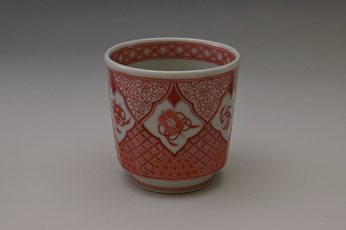 赤絵小紋切立杯