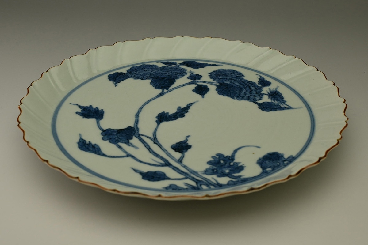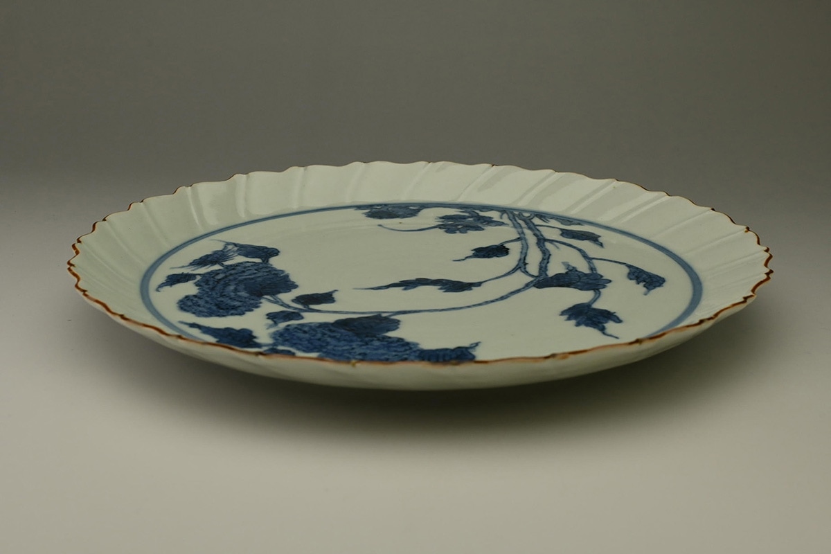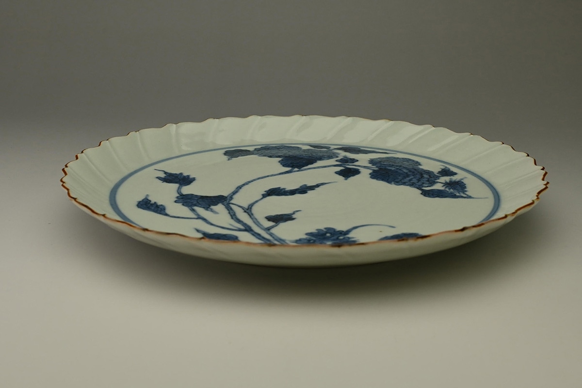 陽刻花鳥文輪花皿